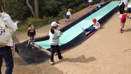 昭和記念公園に到着し、こどもの森で遊んでいます。