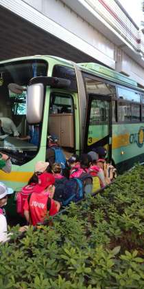 はしめてバスに乗ってのおでかけです。 シートベルトをみんな締め、いざ出発です。