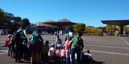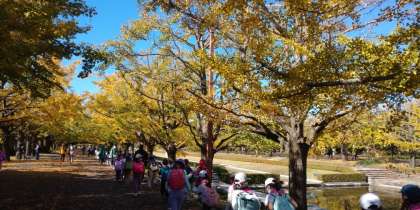 クラスごとに記念写真をとり、こどもの森に向けて歩き始めました。