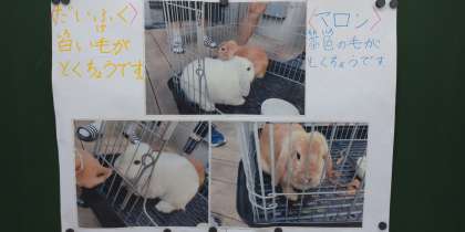 11/15 ウサギが増えました 公開日 2021/11/15 更新日 2021/11/15 できごと 新しいウサギが2羽やってきました。 その名は「マロン」と「大福」です。 飼育委員会の子供たちが中心となって名前を考えました。 「マロン」は、茶色く、秋に松沢小に来たから 「大福」は、白く、大きい幸せがおとずれるように との理由から名付けられました。 以前からいる「ショコラ」ともども、可愛がってほしいと思います。 いいね(0)