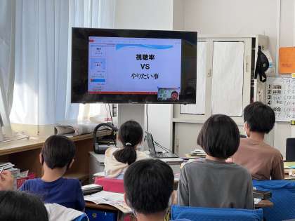 今日の3・4時間目は、社会科の学習との関連で、テレビ朝日の方に出前授業をして頂きました。