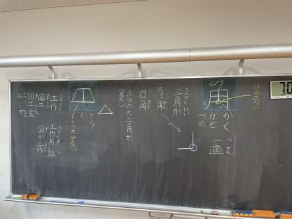 11/17 漢字の学習 2年生 公開日 2021/11/17 更新日 2021/11/17 できごと 今日は、「角」と「工」の学習をしました。 身近にある言葉や、自分たちが知っている言葉を出し合いながら言葉集めをしました。 いいね(0)