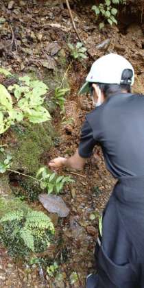 途中で沢蟹を見つけたり、沢の源となる水に触れたりすることもできました。