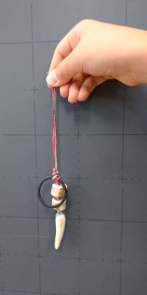 そして、あらかじめ用意されていた鹿の角を紙やすりでこすり、かどばった部分を滑らかにして、ひもを付けて完成です。