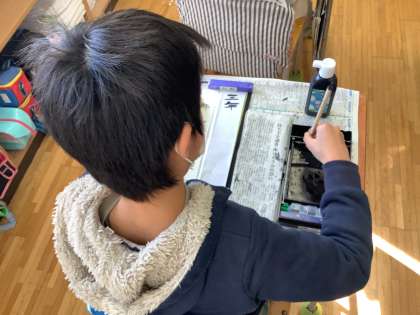 来月から書き初めの練習に入るので小筆の練習をしました。