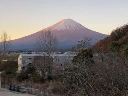 今日の朝の富士山と夕方の河口湖の様子です。