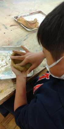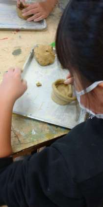 ねん土の感触を味わいながら、器作りに挑戦です。