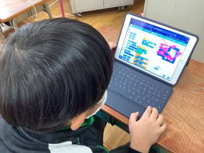 できたゲームを試します。 数値を変え、簡単にしたり難しくしたりして 楽しんでいました。