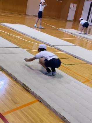 松沢小の学校支援コーディネーターでもある伊東雄大さんが、子供たちに跳び箱運動を教えてくださいました。跳び箱運動に苦手意識のある子供もいましたが、伊東雄大先生の熱血かつ的確なアドバイスで開脚跳びが跳べるようになる子供たちが増えていきました。跳び箱の奥の方に手をつくこと、足ではなくお尻をマットにつくイメージで跳ぶことなどを教えていただきました。