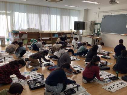 1番よく書けた書き初めを学校公開の時に掲示しますので、楽しみにしていてください。