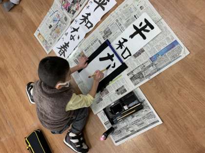 書き初めでは、心を落ち着かせて、一画一画丁寧に書きました。