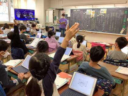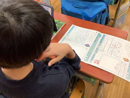 1年生の道徳の様子です。「おおひとやま」という教材文を読み、きまりについて考えていました。