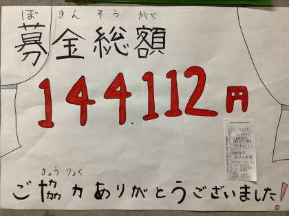 2/7 ユニセフ募金の報告 公開日 2022/02/08 更新日 2022/02/08 できごと ユニセフ募金へのご協力ありがとうございました。3日間の募金にもかかわらず、なんと10万円を大きく超える144112円を募金することができました。ご協力ありがとうございました。 いいね(0)