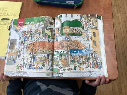 教科書に載っている春夏秋冬の絵を見ながら、季節の様子の違いを探しました。