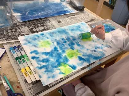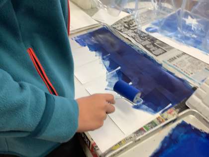 ローラーを使って楽しく創作活動に取り組んでいました。