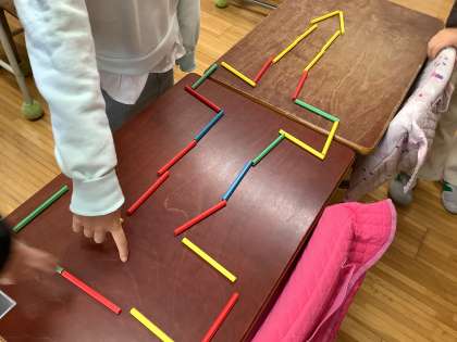 色が違う、同じ長さの棒を使っていろいろな形作りに挑戦です。