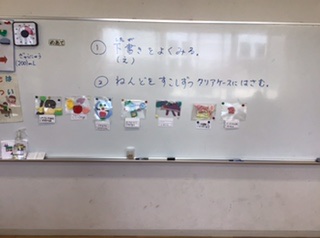 3/1 図工 くすのき学級 公開日 2022/03/01 更新日 2022/03/01 できごと 図工「ぺったんこ粘土の絵」の学習では、絵の具を混ぜた紙粘土を、クリアケースの上にのせながら絵を完成させていきました。下絵から変更した子もいましたが、紙粘土の感触を楽しみながら制作しました。 いいね(0)