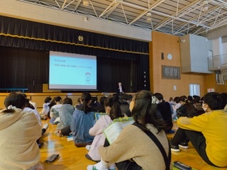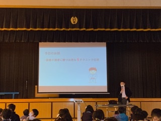 総合の学習「未来への航海」では、社会で活躍する方々に来校していただき、これからのキャリアに役立つ話をしていただいています。