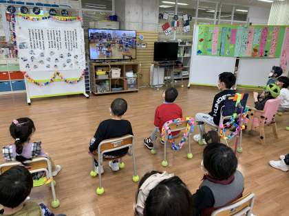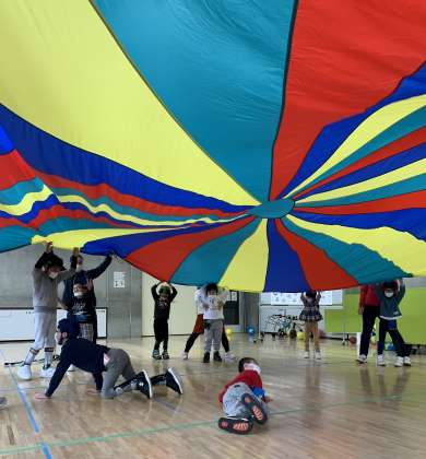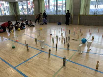 第一部は、だるまさんがころんだとハンカチ落とし、ボーリングをしました。