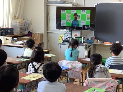 6年生のすてきな歓迎の言葉のあと、1年生からの紹介VTRが披露されました。