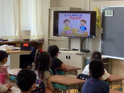4/25 全校朝会(食育指導) 公開日 2022/04/25 更新日 2022/04/25 できごと 4月の食育・給食目標は「食物アレルギーを知ろう」です。 松沢小学校では、対応のある日の給食は、オレンジ色のトレーで給食を提供し、他と区別しています。 紙芝居を通して、食物アレルギーは好き嫌いとは違うこと、本人が注意することはもちろん、周囲の理解や協力が必要なことを伝えました。 いいね(0)