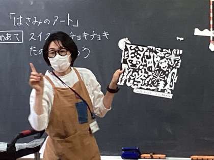 「はさみのアート」はさみを使って、スイスイ・チョキチョキ楽しく色々な形の模様を切りました。
