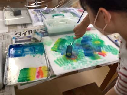 4/27 進めローラー大作戦 5年生 公開日 2022/04/27 更新日 2022/04/27 できごと 5年生の図工の様子です。 1 ローラーの特徴を生かして表し方を工夫しよう 2 ローラーを使ってできた形や色から表したいことを考えよう 3 ローラーを使って楽しく活動しよう をめあてに取り組んでいます。 同じローラーを使ってもいろいろな作品ができあがりました。 いいね(0)