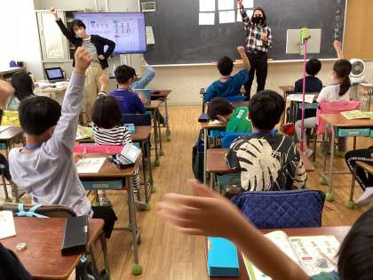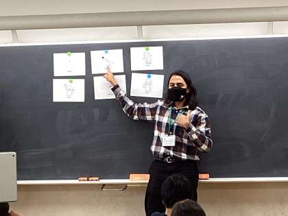 言葉で表現するだけでなく、言葉に合わせた動きも付けながら、答え方を繰り返し練習しました。