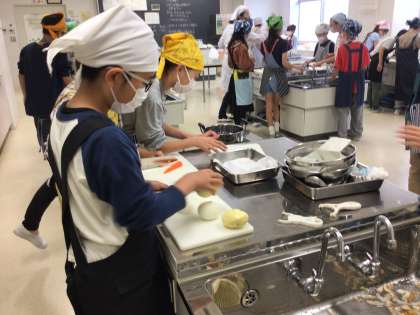 慣れない包丁に少し緊張気味でしたが、楽しく実習を行いました。