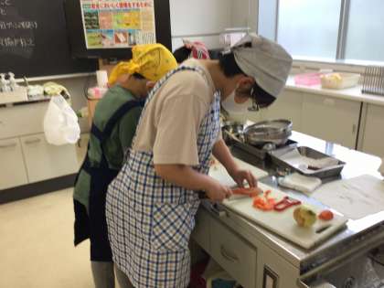 感染症対策を行いながら、色々な野菜を切ったりゆでたりしました。
