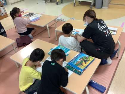5/13 図書 くすのき学級 低学年 公開日 2022/05/13 更新日 2022/05/13 できごと くすのき学級の1年生から3年生は、ふれあいルームで図書の学習をしています。 電車の本や昆虫の本など、それぞれ好きな本を探しています。2冊まで借りる本を探して、図書カードに本の名前を書いたら、あとは自由に読書タイムです。 「1人で静かに読む」のルールを守って、取り組んでいます。 いいね(0)