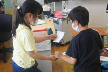5/17 みんなを知ろう会 3年生 公開日 2022/05/17 更新日 2022/05/17 できごと 「もっとみんなのことを知りたい!」との思いから「みんなを知ろう会」を企画し、学級会で話し合いました。 自分のことを知ってもらうための〇×クイズや名刺交換など、みんなのアイデアを生かして活動しました。 当日はきはだ学級のみんなも誘い、一緒に活動しました。 いいね(0)