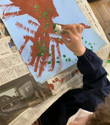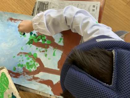 枝や葉の付け方が一人一人違い、個性のある絵が仕上がってきました。みんなで鑑賞する日が待ち遠しいです。