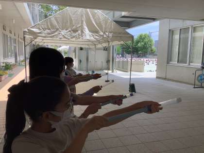 5/25 空気鉄砲 4年生 公開日 2022/05/25 更新日 2022/05/25 できごと 4年生の理科の様子です。 とじこめた空気の性質を利用して空気てっぽうで玉を飛ばしていました。 この活動子供たちには大人気です。 遠くへ飛ばすためにいろいろな工夫を考えながら楽しんでいました。 いいね(0)