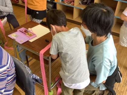 5/31 「キャリア・パスポート」3年生 公開日 2022/05/31 更新日 2022/05/31 できごと 体育学習発表会を終え、本番までの頑張りを「キャリア・パスポート」に書いて振り返りました。 本番の映像を見ながら、自分の成長を実感し、思わず笑顔になっていました。 その後は本番で使ったはちまちにメッセージを書き合いました。すてきな宝物ができていました。 いいね(0)