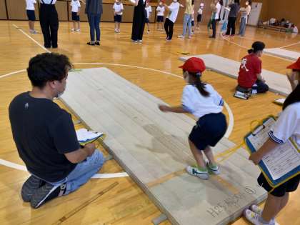 1年生は保護者ボランティアの皆さんにも、計測の協力をしていただきながら、初めての種目の計測をしっかり行うことができました。