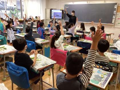 1時間目の生活科は、そら豆の鞘むきでした。きれいに手を洗い、栄養士の作ったビデオを見た後、実物を観察してから鞘を剥きます。
