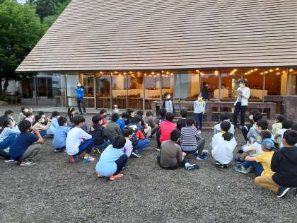 霧がかかり、肌寒いですが、身支度、荷物整理をして、朝会を行いました。