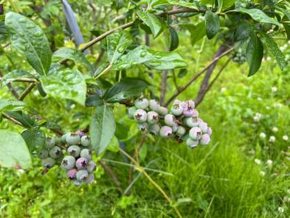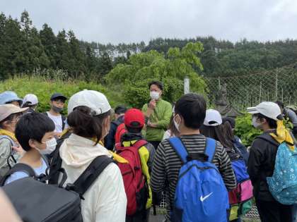 宿舎を出発して、リンゴ畑の間の道をくだります。