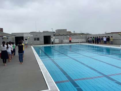 今日は気温・水温が上がらずプールに入ることはできませんでしたが、4年1組と4年2組は、プールサイドまで行き、プール開きだけ行いました。プールに入る際の約束事を守り、安全に気を付けて水泳学習をしていきます。