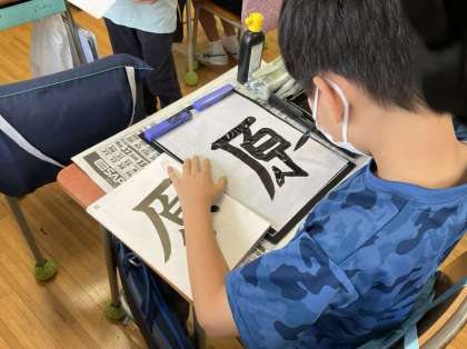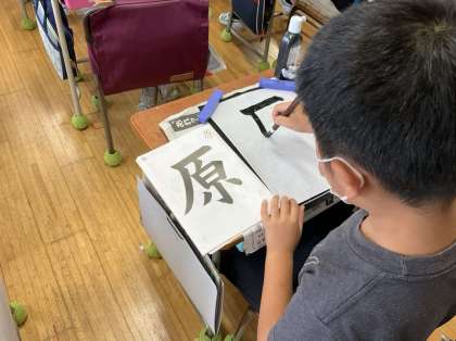 6/16 バランス良く 4年生 公開日 2022/06/16 更新日 2022/06/16 できごと 書写で「原」を書きました。 部分のバランスを確認してみると 文字の中心が思っていたところと違っていたそうです。 気づいた点に注意しながら書きました。 いいね(0)