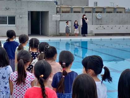 代表の児童がプールの学習で頑張りたいことを発表し、プールに入る際の約束事やバディのやり方も確認することができました。