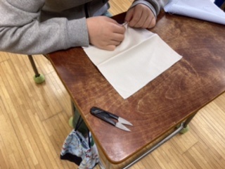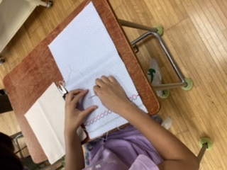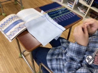6年生はスウェーデン刺繍をしました。細かい作業に集中して挑戦していました。少しずつ縫い進めていきます。