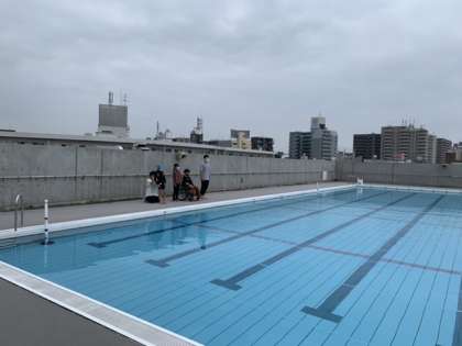 この日は曇りで水温も低いため、中に入ることは出来ませんでしたが、プール開きをしました。