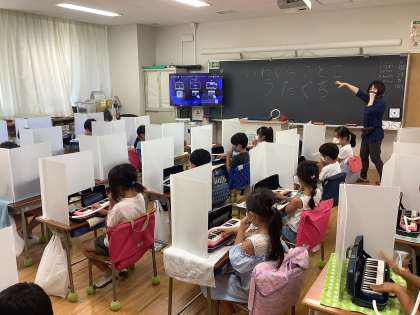 「カエルのうた」の一部をドの音で弾き、楽しそうに練習に取り組んでいました。