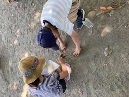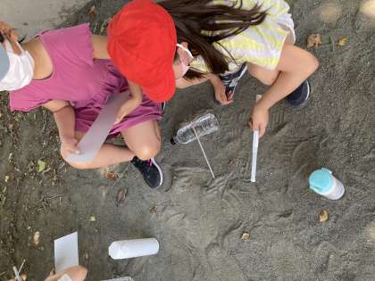 日なたと日かげの地面の温度の違いを温度計を使って調べました。
