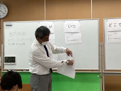 日刊スポーツにお勤めの松沢小の卒業生、吉見明樹さんをお迎えして、「ジュニア記者教室」を行いました。