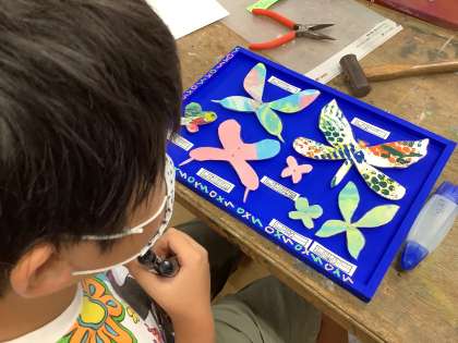 9/9 標本箱作り 4年生 公開日 2022/09/09 更新日 2022/09/09 できごと 4年生の図工では標本作りに取り組んでいます。 自分で創作した蝶を標本に配置し、くぎで留めていきます。 すてきな標本が完成しそうです。 いいね(0)