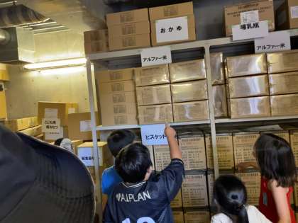 防災倉庫には、お粥やアルファー米、ビスケット、水等がいっぱいありました。でも、たくさんの人が一気に押し寄せたら、すぐになくなってしまいます。ですので、ご家庭での備蓄をお願いしているのですね。