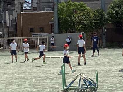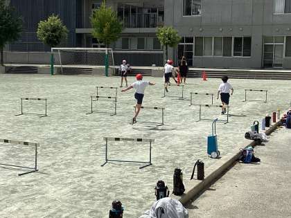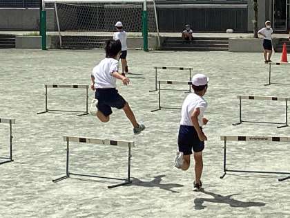連合運動会に向けて、6年生がハードル走と走り高跳びの練習に取り組みました。